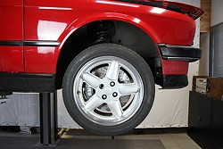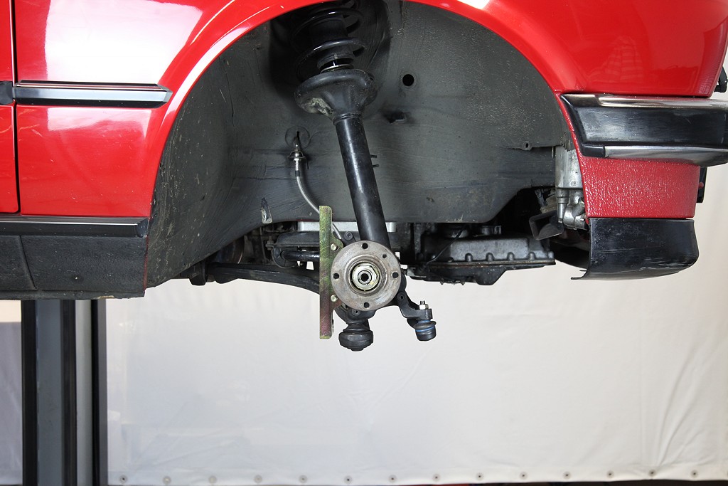 E30 wird die originale Bremsanlage komplett entfernt. Im Foto fehlt das